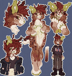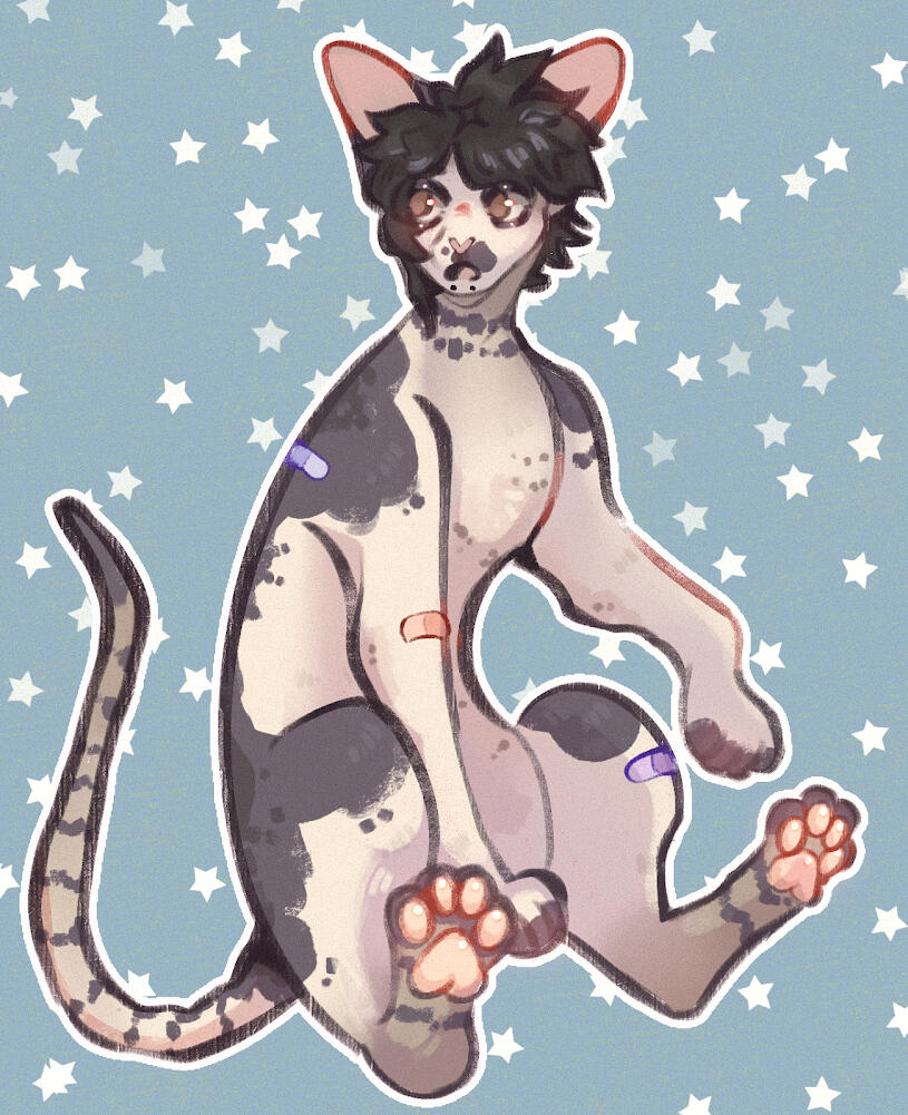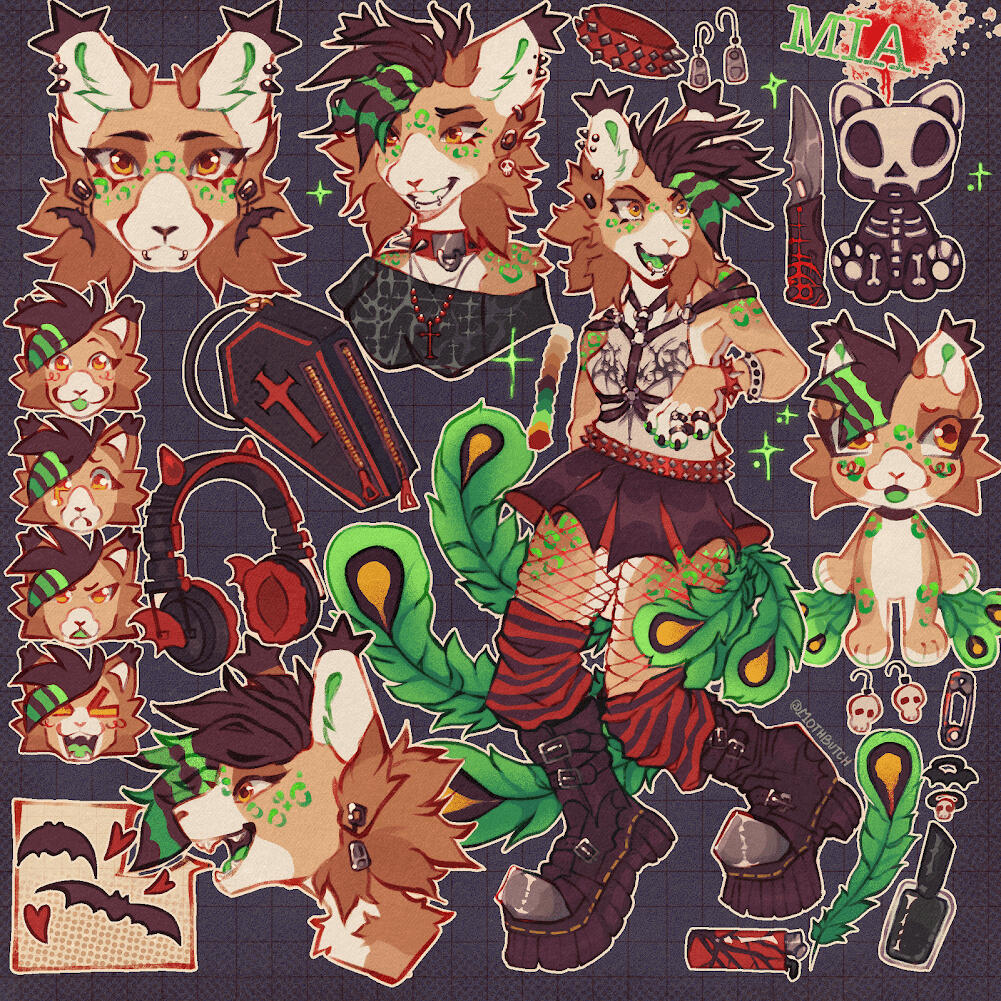 - moodboard custom: $50--you provide me a moodboard (and other info like species, colors, etc.) and I give you a character in my complex sticker ref sheet style with a lot of creative freedom.